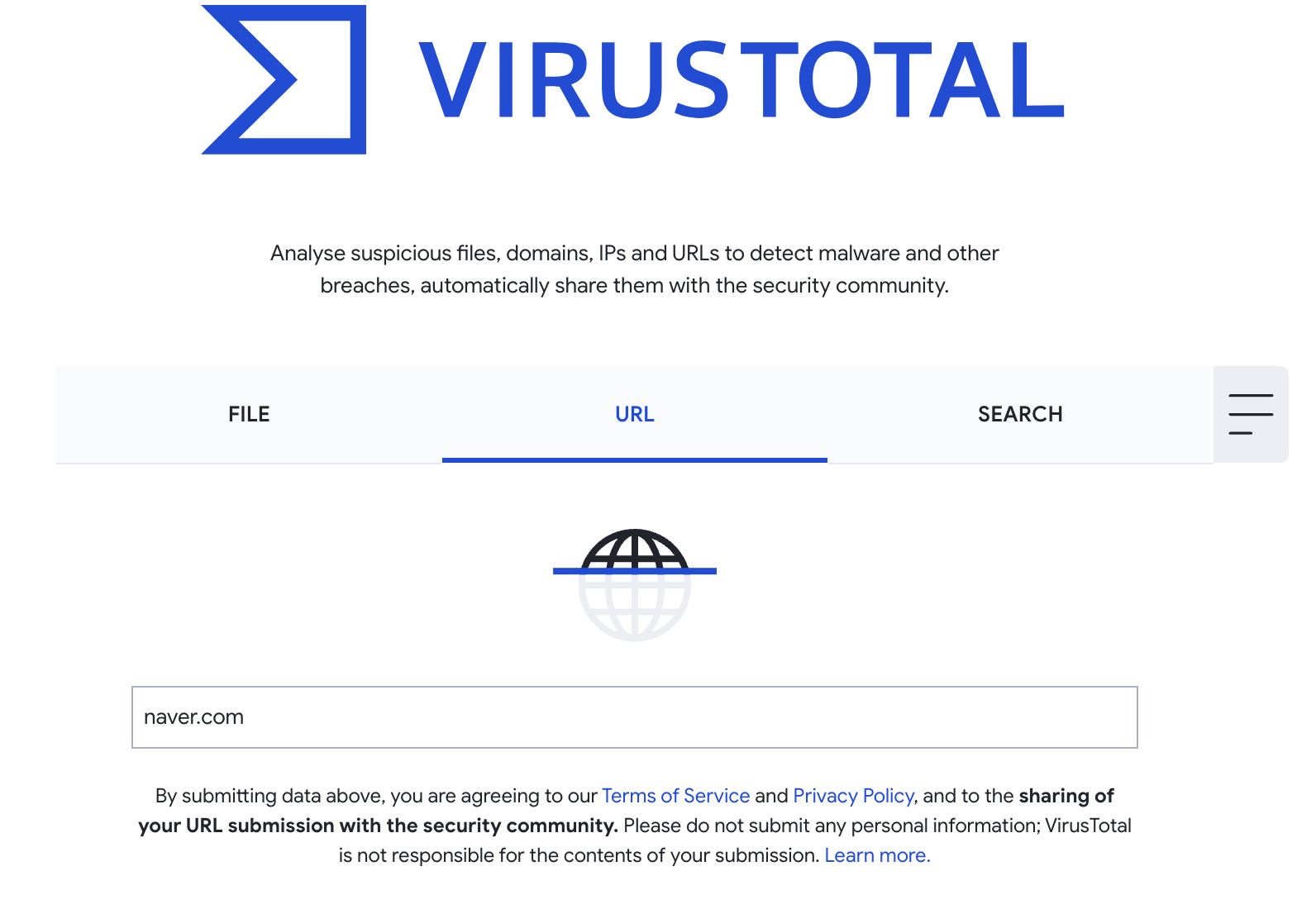 VirusTotal은 다양한 안티바이러스 엔진과 웹사이트 스캔 도구를 사용하여, 제출된 파일이나 URL이 안전한지 검사하는 서비스입니다. 이 서비스는 사용하기 쉬우며, 무료로 제공됩니다.